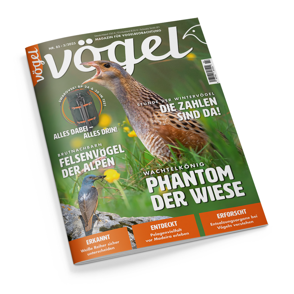 Sechsmal im Jahr nimmt Sie VÖGEL mit hinaus in die Natur zu vertrauten Arten vor Ihrer Haustür und zu faszinierenden Vogelwelten in der Ferne. Entdecken Sie besondere Beobachtungsorte, lesen Sie bewegende Geschichten aus der Natur und lassen Sie sich zu eigenen Erlebnissen inspirieren. Ein Magazin, das begeistert, verbindet und die Liebe zur Natur lebendig hält.
